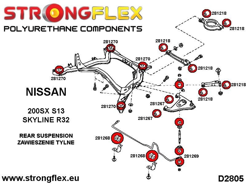 - 4x 281270A Rear beam mounting bush SPORT