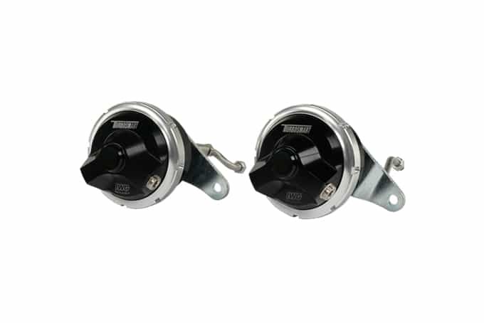 Turbosmart GenV IWG75 Twin Port Upgrade Actuator Set for the Nissan R35 GT-R, including Position Sensors. These Actuators have it all, sharing the technology from the Award Winning GenV Range of External Wastegates providing unparalleled actuator performance.