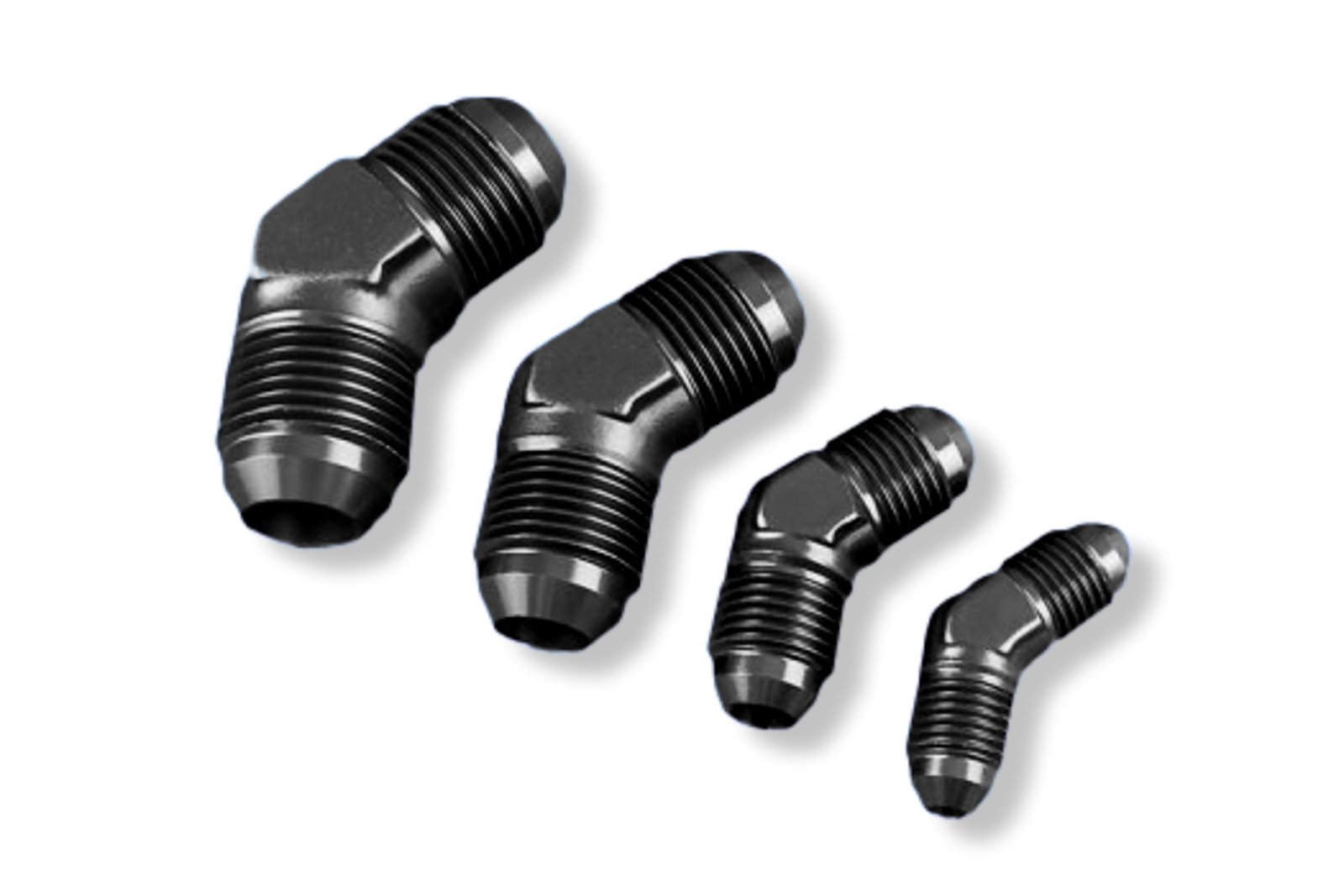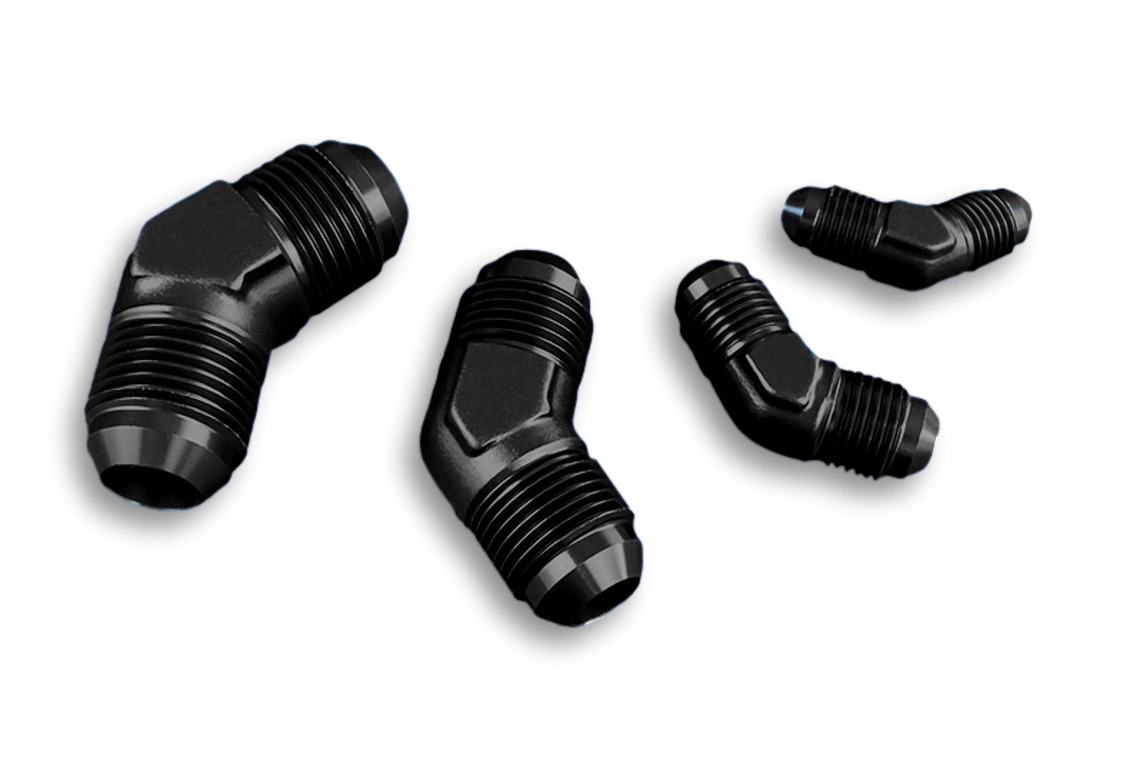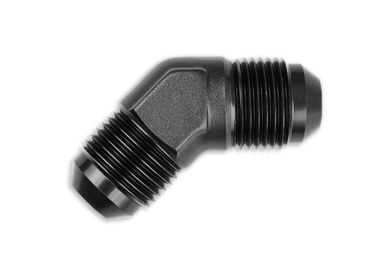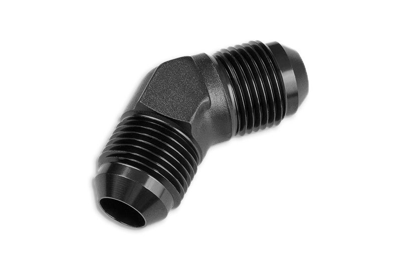 Adaptador AN12 de 45″ con acoplamiento macho-macho para manguera, color negro.