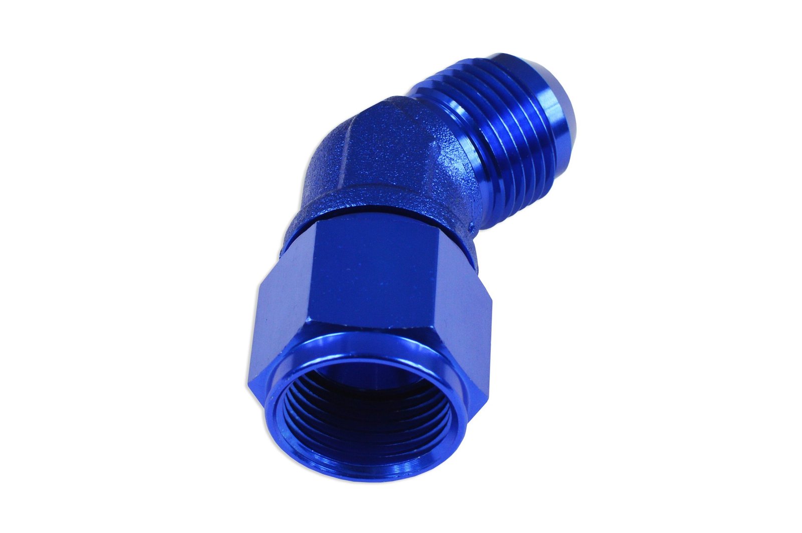 Adaptador AN8 de 45″ con acoplamiento hembra-macho para manguera, color azul.