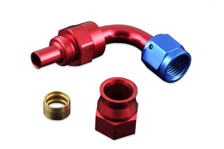 AN-10 AN10 JIC Conector de manguera de PTFE para combustible de 90 grados, extremo rojo