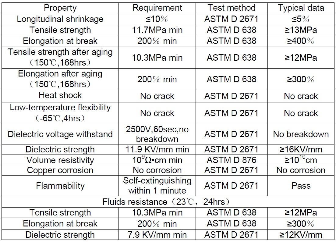 Made of irradiated cross-linked high-quality oil-resistant polymer, it is suitable for use in environments requiring oil resistance and abrasion resistance. It has excellent oil, chemical and solvent resistance and provides protection for wire harnesses, cables or coated components.