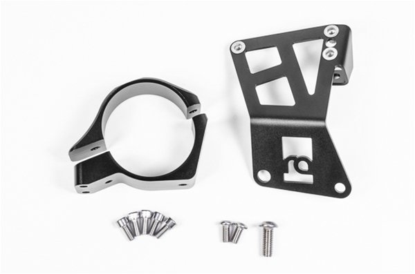 Vehicle mounting bracket and 2pc clamp for installing a Radium Engineering fuel filter in the Mitsubishi EVO X. Filter and lines are not included.