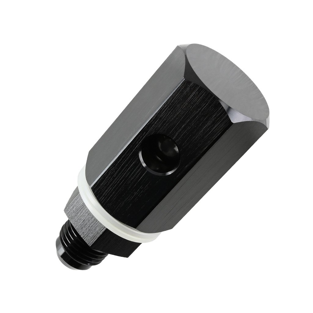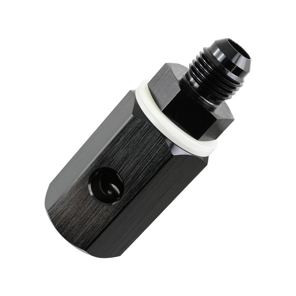 A gravity-operated ball check valve is a reliable safety device for fuel systems. It remains open in a vertical position and automatically closes when tilted by at least 90 degrees — the ball inside the valve gravitationally cuts off the fuel supply. It prevents fuel leakage in situations such as vehicle rollover. Made of lightweight and durable aluminum, it is designed for vertical installation in AN6 fuel lines. Compatible with all types of fuel, including methanol and E85.
