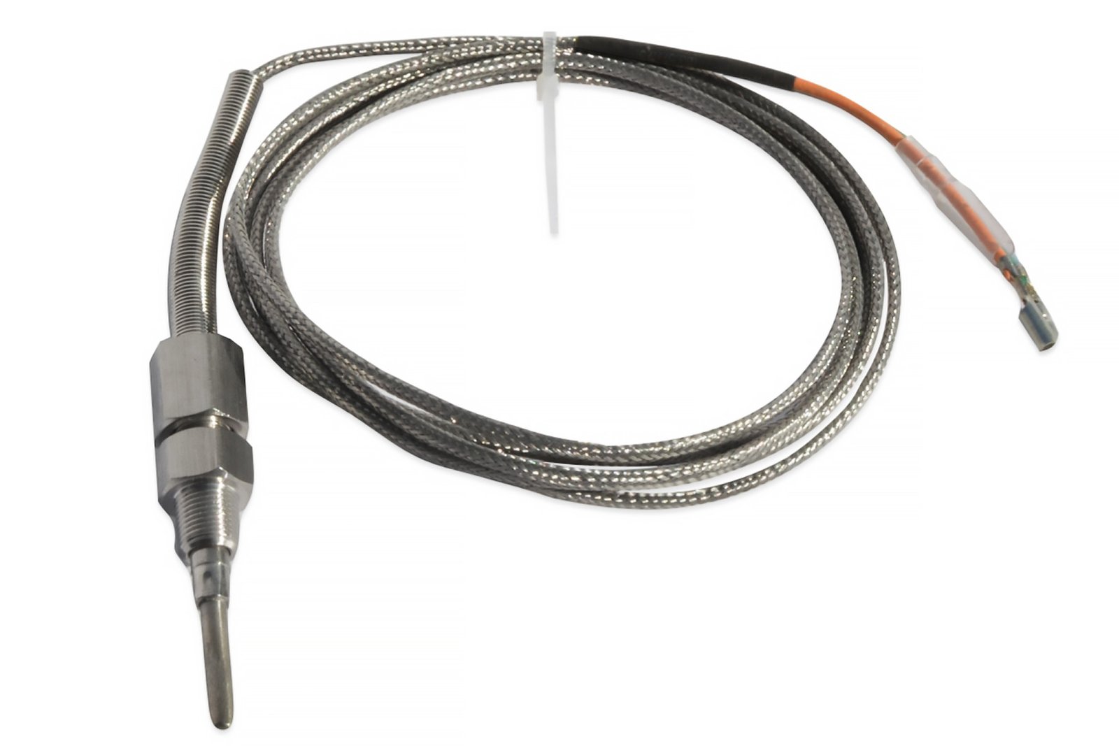 Exhaust gas temperature sensor (EGT). Unlike Chinese sensors the design of our probe guarantees quick response to changing temperature and very high resistance to high temperature. Diameter of the probe: 4mm Length of the wire in a metal braid is 2 meters. Set also includes a mounting sleeve. Working temperature: 0-1200 ° C Material: Stainless steel Thread type: 1/8 ”NPT Cable length: 2 m External cable Shielding: Stainless steel Braiding Internal Insulation cable: Fiberglass