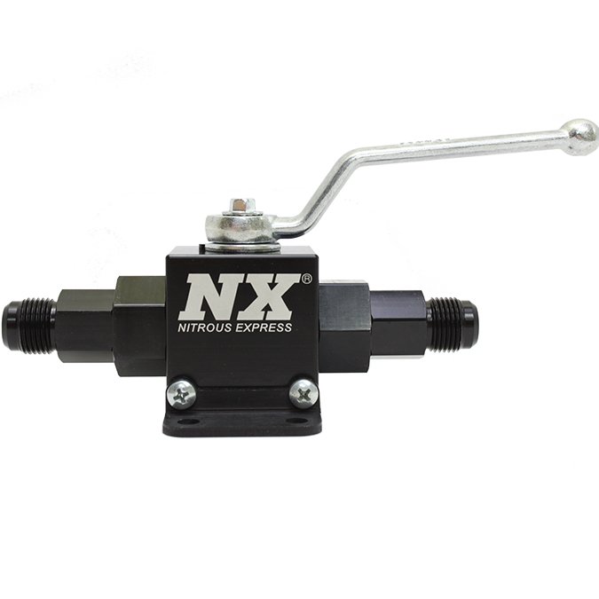 The Lightweight Billet Aluminum In-Line Ball Valve is equipped with a 1/2 inch orifice and includes 6AN inlet and outlet fittings. These valves feature and a direct flow, straight through design which is capable of flowing over 2,000 nitrous horsepower. The included mounting bracket can be bolted to a flat surface or optional roll bar mounting brackets.
