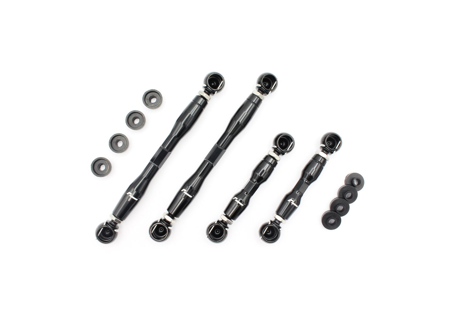 Because RacingLine’s design uses left and right-hand stainless steel threaded adjusters in each link, you can set your perfect ride height in situ on the vehicle without repeated removal/refit between adjustments. Just a turn of the link body adjusts each corner of the car one at a time.