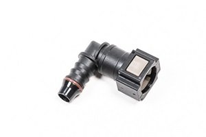 Radium Engineering, conector hembra SAE de 5/16 pulg. a conector de 90 grados de 3/8 pulg.