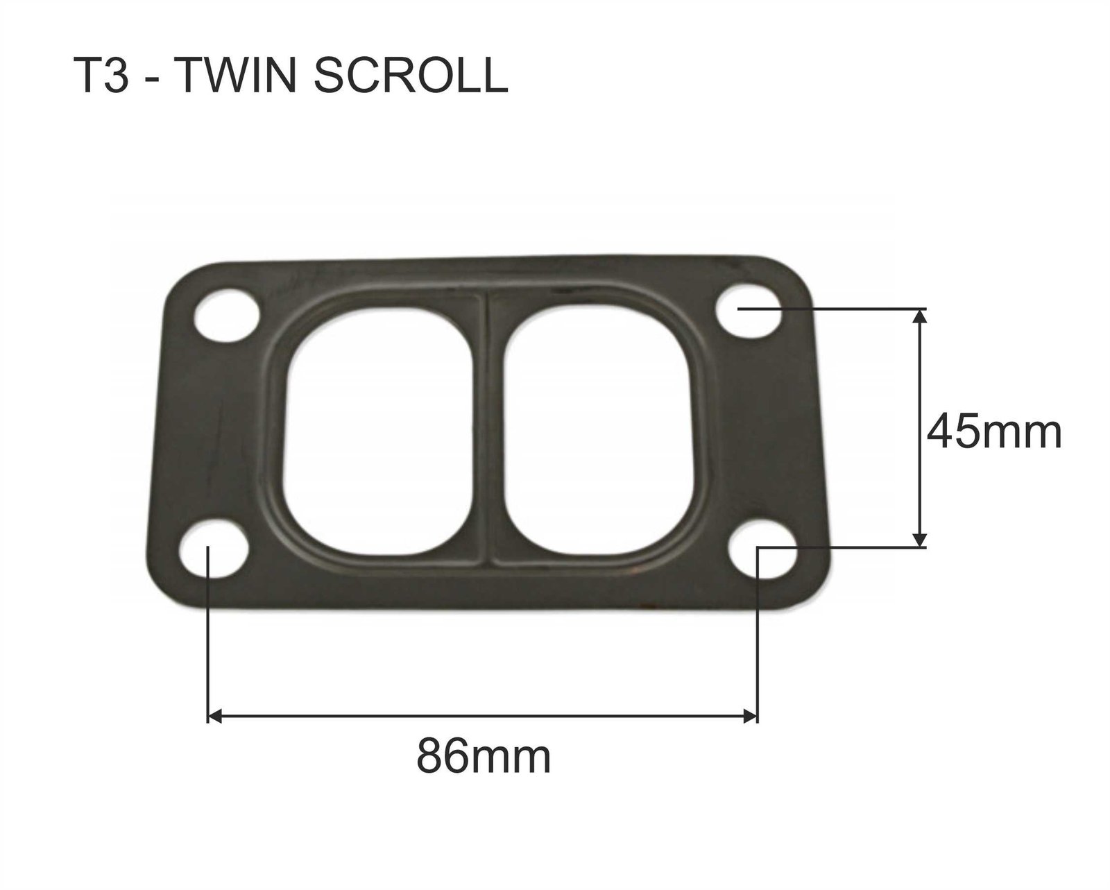 Gasket for turbochargers based on the T3 Twin Scroll flange, e.g. Garrett GT30, GT35, Holset HX35. Made of stainless steel. Strong crease that perfectly seals the connection between the exhaust manifold and the turbine it doesn’t burn unlike other cheap gaskets.