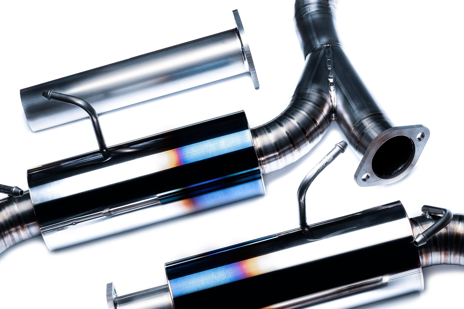 Vogler Racing titanium exhaust designed from scratch with properly calculated pipe diameters and perfectly matched muffler sizes in order to increase engine power and torque. Exhaust provides maximum weight reduction over regular stainless steel exhaust systems and guarantee excellent durability. Due to its design it reduces back pressure in the exhaust system. Vogler Racing exhausts also significantly improveing visual aspects of the car and above all quality of sound emitted by the exhaust. Compared to steel titanium is resistant to corrosion, very lightweight and extremely durable at the same time. As a result contact of titanium with oxygen a passivation layer of titanium oxide with a thickness of about 2 nm is formed on its surface and that increases resistance to corrosion. Lightweight and high strength in relation to the material density and high melting point mean that titanium is used to build the most modern aircraft, including stealth fighters and space shuttles.