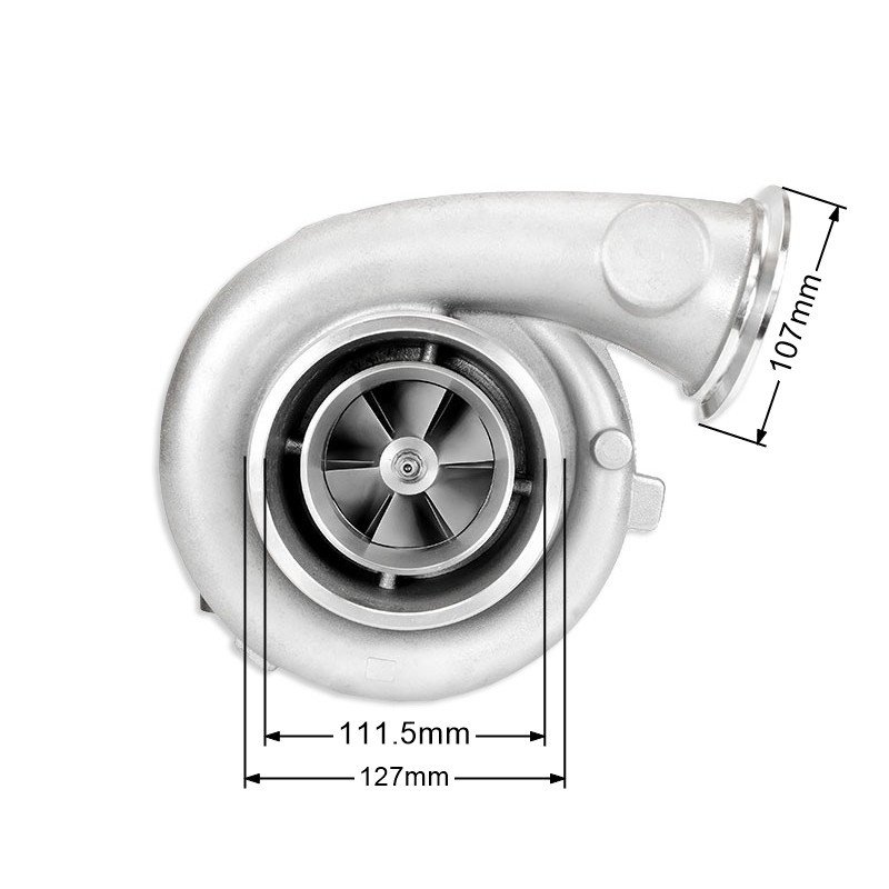 JRspec GT45R Sinble Ball Bearing is a turbocharger built on the basis of high-quality floating bearings (made in japan), which is widely used in tuning. CNC forged compression wheel (billet wheel), which allows you to get much more power from the engine with a similar spool to the usual version. Assembled in the EU from perfectly fitted parts, made of the highest quality materials using precise machines. As many as 5 stages of balancing rotors reaching 250,000 rpm, guarantee trouble-free use even in extreme conditions, at very high recharges and temperatures. JRspec turbochargers are proven in motorsport, used, among others in drag through Tsunami (2x R30 engines, 2x JRspec GT42R JB turbo engines, giving about 2300km of power), in drift by Paweł Trela (2JZ engine, JRspec GTX3582R + BB turbo, about 900km of power), Kornel Pruss (LS7 engine, turbo JRspec GT45R JB , over 1200hp of power) and many strong street cars. Applied Hybrid Ceramic ball bearings clearly improve the turbine spool, thanks to which the engine reacts much faster to the gas pedal, achieving high torque at much lower speed than in the case of turbines based on slide bearings, and even a classic ball bearing – extremely useful in drift and street where engine flexibility is of great importance. Capacity: up to 1200HP Application: 3.0 – 7.0l Bearings: floating bearings (made in Japan) Restrictor: choose the right diameter for the oil pressure (1.8mm recommended at 5B) Suction impeller: inducer 80mm, exducer 107,90mm Exhaust rotor: 89mm Internal wastegate, turbo contains an actuator