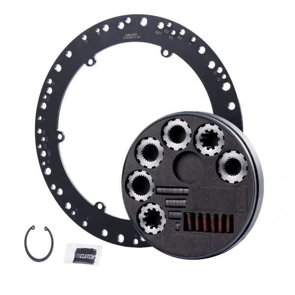 UniClutch Vehicle Fitment Kit includes a Multi-Fit Flywheel Mount, Transmission Spline Set, 12.9 Grade Bolt Kit. Suits 240mm UniClutch.