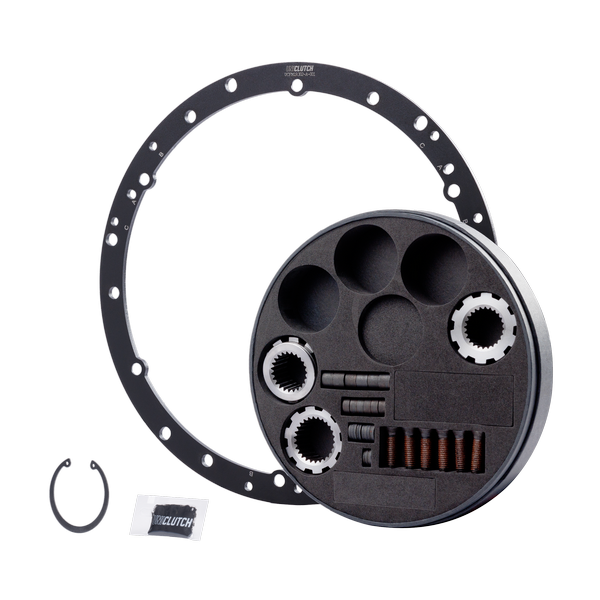 UniClutch Vehicle Fitment Kit includes a Multi-Fit Flywheel Mount, Transmission Spline Set, 12.9 Grade Bolt Kit. Suits 240mm UniClutch.
