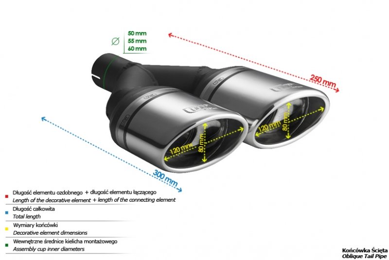 Universal Exhaust Tail Pipe Muffler Tip oval 120×80mm lenght 250mm mounting diameter 60mm