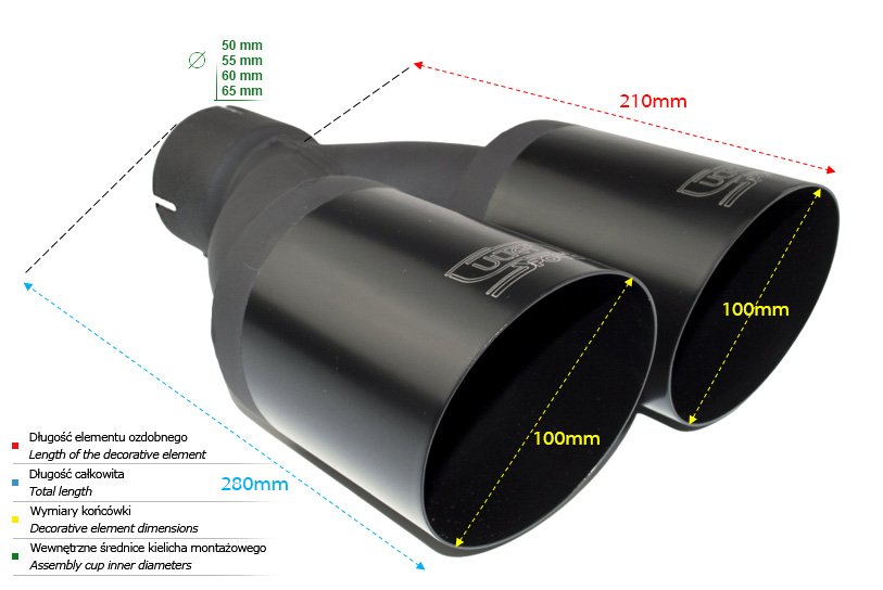 The Ulter Sport exhaust tip is a perfect solution when looking for high-quality components for the construction of your exhaust systems. Advanced technology and precise design, Ulter Sport exhaust tips ensure perfect exhaust gas flow, extracting maximum power from the engine and emphasizing the sound of engine and exhaust. Available in various configurations and styles, Ulter Sport exhaust tips enhance the appearance of your car, adding a sporty character and an sport sound. Additionally, the use of high-quality materials, such as polished stainless steel, guarantees long-term durability and corrosion resistance. Ulter Sport exhaust tips work perfectly with your car’s existing exhaust system to ensure smooth exhaust flow. Whether you want to improve the performance of your sports car or simply make optical modifications, Ulter Sport exhaust tips will surely meet your expectations. Thanks to their installation, your car will not only gain an additional strong sound, but will also gain in appearance, becoming a unique and individual vehicle. If you are looking for a proven solution that combines high quality workmanship, efficiency and aesthetics, Ulter Sport exhaust tips are the perfect choice for you. Give your car even more character by choosing a product from Ulter Sport company. The end tip should be installed using a clamp or welding. The tip is made in Poland. Made of the highest quality steel.