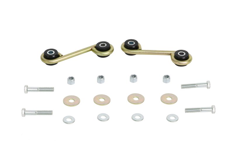 The kit utilises a high tensile spring steel link fitted with ultra low compliance synthetic elastomer bushings. Critical hardware is replaced with high tensile components to match the higher loads. The result is much more precise and direct roll control with up to 20% more effective bar rate available at lower wheel deflection points. This does NOT mean an outright increase in your bar rate but rather a quickening of its effect allowing more bar rate earlier.
