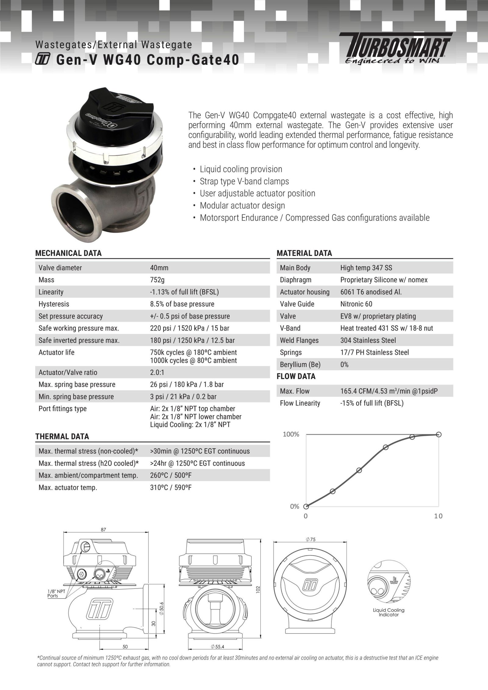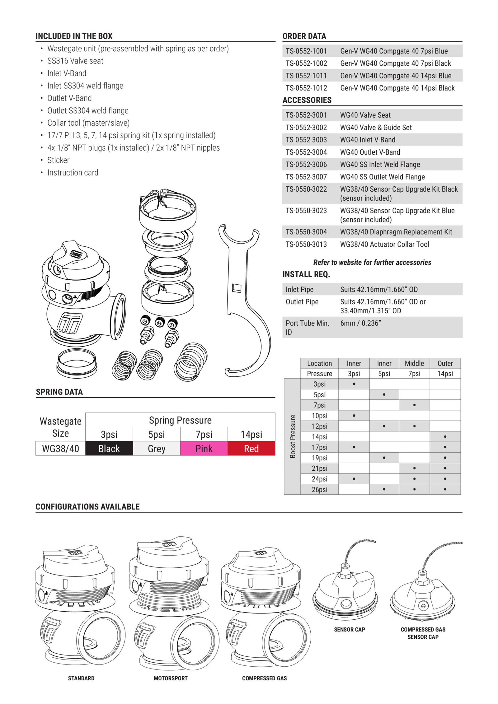 Wastegate Turbosmart TS-0552-1013 WG40 GenV Compgate 40 14 psi