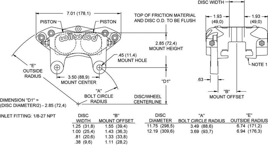 Wilwood’s new Forged Narrow Mount Dynalite (FNDL) calipers are ideal for and widely used in many competition applications including late models,modifieds, sprints, off road and road racing. Computer generated design and stress analysis technology, is the latest innovation from Wilwood providing substantial improvements in strength and performance over all comparable caliper models.Forged Narrow Mount Dynalites are the strongest calipers in the class. FNDL calipers are a direct replacement for all previous Wilwood NDL’s and similar competitive brands with 3.50″ centered mounting tabs. A total of five bolts provide superior bridge strength and positive retention of the top loaded 7816 or 7216 type brake pads. The full range of PolyMatrix pad compounds is available to match the brake response and heat range requirements of any competition application.