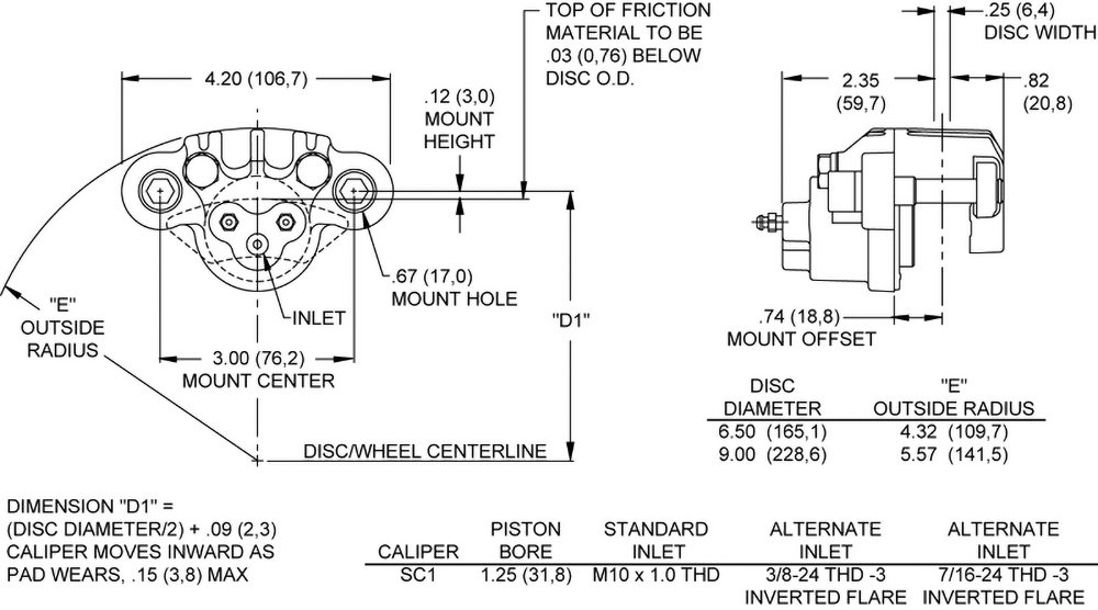 The mounting system features corrosion resistant slide pins floating in viscoelastic rings mounted in the ears of the body for smooth, rattle-free operation. This system controls pad knock-back to retain a consistent pedal or hand lever feel throughout the life of the pads. Weight: from 1.1 pounds. Rotor thickness range: .15” to .25”