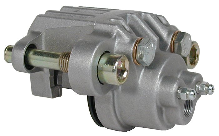 Designed, engineered and manufactured in the U.S.A., this floating die cast aluminum caliper is a strong, compact, inexpensive answer to the braking needs of recreational, agricultural and industrial vehicles. Features of this single piston design include availability of either 1.06”, 1.19” or 1.25” bore size, fitted dust seal to prevent ingress of environmental contamination, dual bleed fittings for versatility in mounting position and fluid inlets in M10 x 1.0 banjo.